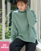 前振りにした脇線の裾にスリットが入った、前後差をつけた着丈のニット。