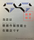 当店は、眼鏡作製技能士 2名在籍しております。