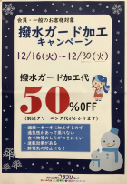 撥水ガード加工代⇨⇨50%off(別途クリーニング代金かかります)