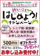 ★シニア割対象の65歳以上の方、家族割をご利用の方・再入会・複数受講申込の方で、体験当日または体験なしでの受講申込をいただくと、500円分のイオン商品券をプレゼントいたします。