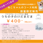 10月~11月は、ねこちゃんのコース利用されたお客さま限定で