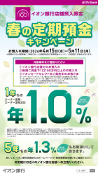 イオン銀行より、店舗預入限定の「春の定期預金キャンペーン」をご紹介いたします。