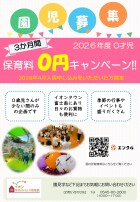 4月に入園申し込みいただいた0才児さん対象に入園より3ヶ月保育料0円のキャンペーン実施中!