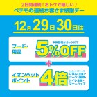 さらにわんちゃんねこちゃんごはん・トイレ用品お買い上げ時、10%相当のイオンペットポイント還元!通常の4倍!