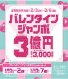 1等・前後賞合わせて 3億円の 『バレンタインジャンボ宝くじ』