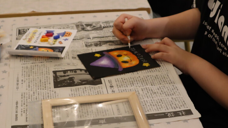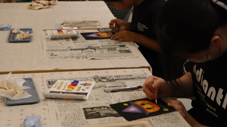 オイルパステルが指でぼかしやすく、きれいな色合いの作品ができあがっていました🎃