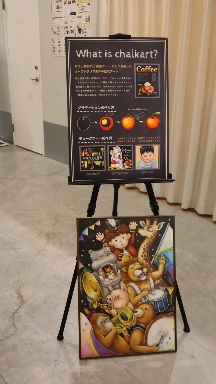 下地を事前に講師が描いているので、塗り絵間隔でチョークアートを楽しめる講座となっていました🎨
