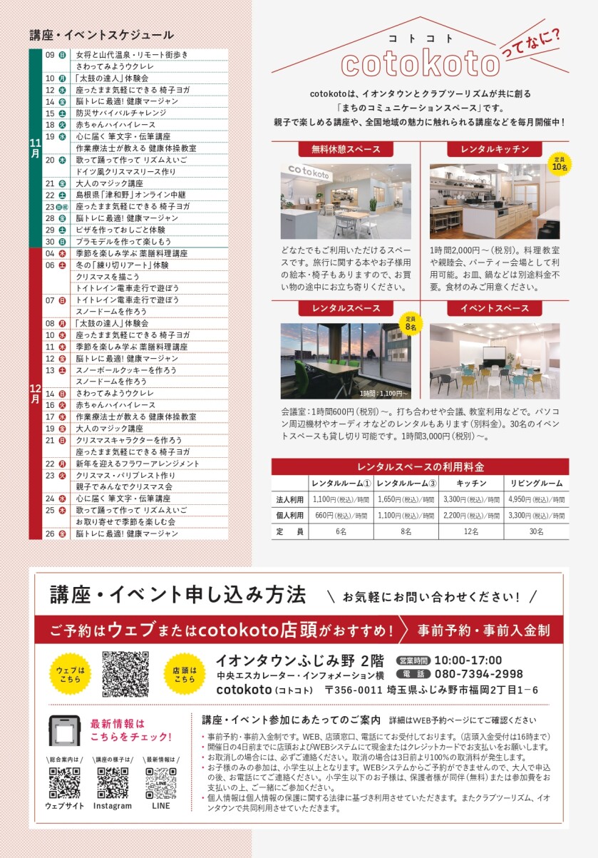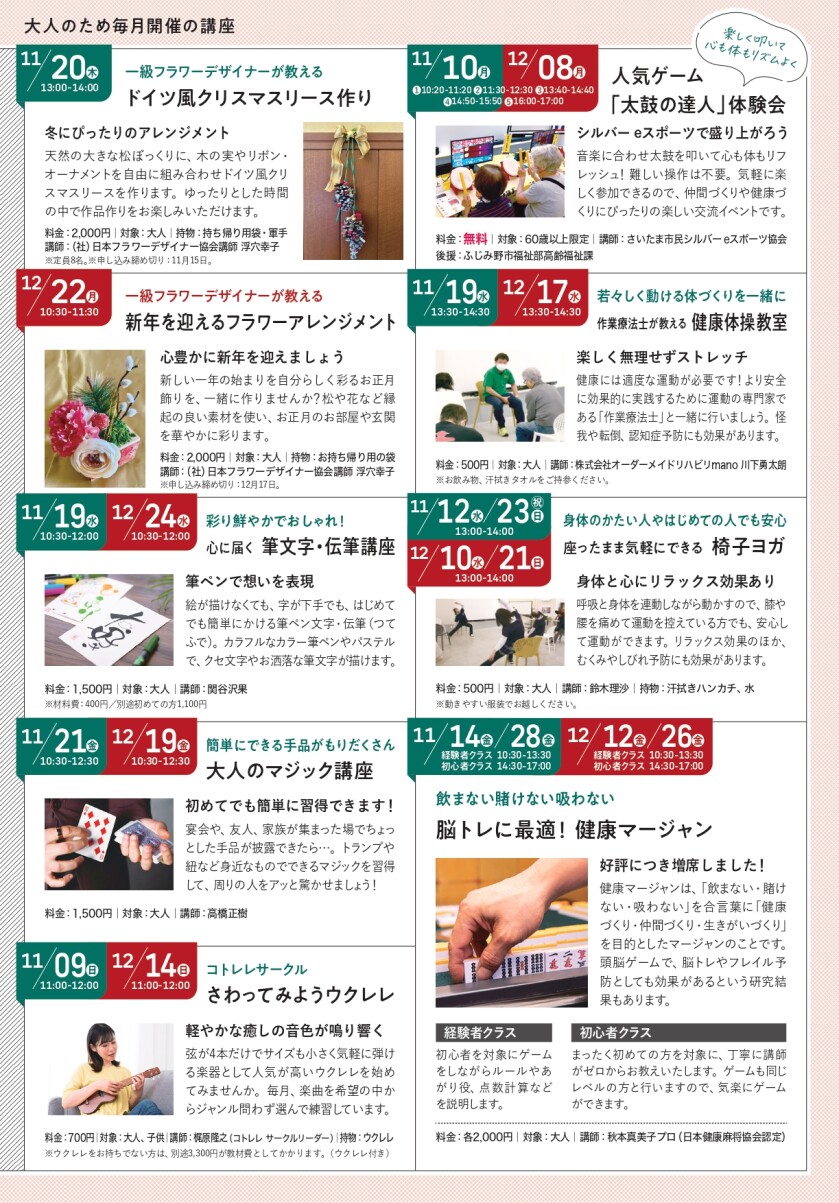 ※満席の講座も増えております。当日参加を思い立たれた場合、必ず電話または、WEBにて空席状況をご確認いただけると幸いです。
