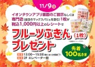 イオンタウンアプリ画面のご提示もしくは専門店(当日のマックスバリュを含む)1枚が税込1,000円以上のレシートでフルーツふきんを1枚プレゼントいたします。