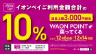12/6(土)~14(日)の期間、AEONPayのお支払いでご利用金額の10%分がWAONPOINTでポイントバックされます!