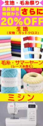 生地・毛糸・ミシンが会員価格、最終特価から更に20%OFF!