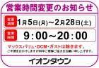 1月5日(月)~2月28日(土)の期間、営業時間が9:00~20:00となります。