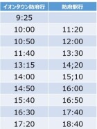 10月1日よりシャトルバス時刻表が変更となり防府駅行20:00が廃止となっております。