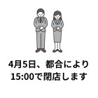 4月5日(日)は都合により、15:00で閉店いたします。あわせて当日は買取の最終受付を14:00までとさせていただきます。