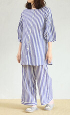 爽やかなストライプのルームウェア。