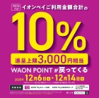 12/6(土)~14(日)の期間、AEONPayのお支払いでご利用金額の10%分がWAONPOINTでポイントバックされます!