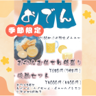 おでん5種と【生ビール・ハイボール・チューハイレモン】いずれか1杯付き