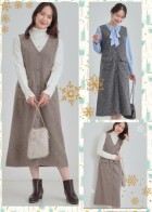 冬らしい温かみのあるツイード調素材を使用したジャンパースカート。 胸元はVネックデザインですっきりとした印象に。