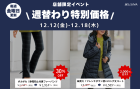12/12(金)~12/18(木)は「細見え!フレンチダウン使いロング丈コート 」・「ポカポカ!静電防止付裏ファーパンツ」・