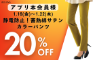 1/16(金)~1/22(木)は「静電防止!蓄熱綿サテンカラーパンツ」がアプリ本会員様限定20%OFF!