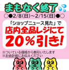 店内あれもこれも『ショップニュース見た』でレジにて20%引き!