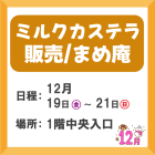 開催中 ショップイベント ミルクカステラ販売 実施期間 2025.12.19 ~ 2025.12.21 場所 1階中央入口 一覧ページへ 本館1F サービス イオンタウンイベント・ニュース イベント・ニュース