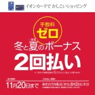 期間中、対象店舗でイオンカードのボーナス2回払いご利用で金利が無料となります。(通常3%)