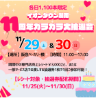11/25(火)~11/30(日)のイオンタウン湖南内お買い上げレシート税込3,000円ごと、
