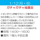 イオンタウン伊勢ララパーク専門店での当日お買上レシート税込1,000円以上のご提示で1回抽選していただけます。