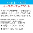イオンタウン伊勢ララパーク専門店での当日お買上レシート税込1,000円(合算可)以上のご提示でご参加いただけます。