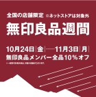 「無印良品週間」は、無印良品メンバーを対象に、全品(※一部商品除く)10%オフとなるキャンペーンです。