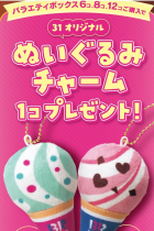 ほかにもバラエティボックス6コ、8コ、12コご購入で31オリジナルぬいぐるみチャームプレゼントのキャンペーンもおこなっております!