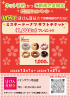 「ミスタードーナツ ギフトチケット(1,000円)」プレゼント。