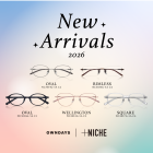 トレンド感のあるエッジの効いたデザインが特徴の、「+NICHE」シリーズから、ギークシックなムードを取り入れた新作フレームが登場!