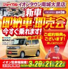 2026.03.09 実施期間:3/20(金)~3/22(日) 【ジョイカル】新車即納車・販売会開催! 【3日間限定!新車即納車・販売会 開催!!】 通常、新車のご注文から納車までには 約2ヶ月ほどお時間をいただいておりますが、 本イベントでは早期登録・即納が可能な車両を厳選して展示・販売いたします。 「年度内に乗り換えたい」「できるだけ早く手元に届いてほしい」と お急ぎの方は、ぜひこの機会にご来場ください。 皆さまのお越しを心よりお待ちしております。 ※イベントの詳細は、下記の画像をクリックしてご確認ください。 一覧ページへ 本館1F サービス ジョイカル イオンタウン南城大里店 営業時間 10:00~19:00 ※休業日:水曜日 電話番号 098-943-7179