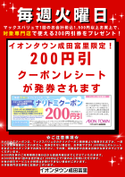 イオンタウン成田富里で使える200円引券をプレゼント!