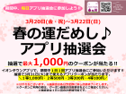 3月20日(金・祝)~3月22日(日) 春の運試し♪アプリリニューアル抽選会