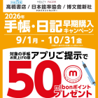 (対象となるのは、高橋書店・日本能率協会・博文館新社の手帳・日記です)