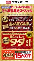 2025.12.27 実施期間:1/4まで 年末年始 前の記事 次の記事 一覧ページへ EAST1F グッズ MEGA SPORTS スポーツ用品、ウェア、シューズ 営業時間 10:00~21:00 電話番号 0584-83-8333