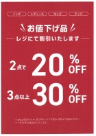 「お値下げ品」割引セール開催!!