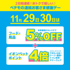 さらにわんちゃんねこちゃんごはん・トイレ用品お買い上げ時、10%相当のイオンペットポイント還元!通常の4倍!