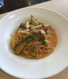 Cナス、枝豆、ベーコンのトマトクリームソース+¥100