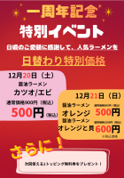 終日、醤油ラーメンを日替わり特別価格でご提供いたします☺️