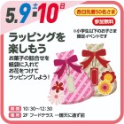 紙ぶくろをリボンやお花でデコレーションして、その中にお菓子の詰合せを入れるラッピング体験イベントです。完成した紙ぶくろには、お菓子の詰合せを入れた状態でお渡しいたします。