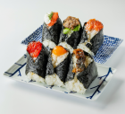 お米は君田産のコシヒカリをベースにしたオリジナルブレンドの国産米を、海苔は歯切れが良く口溶けは滑らかな磯の香りとほのかな甘味が自慢の有明海産の最高級海苔を使用。塩は南太平洋の海水をそのまま天日干しして作られたミネラルたっぷりの天然塩を使用し、冷めても美味しいおむすびをご提供する専門店です。