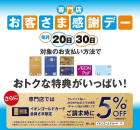 専門店では5%OFFやポイント2倍など、お得な特典を実施!