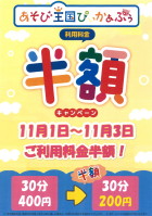 キッズコーナー「あそび王国ぴぃかぁぶぅ」半額キャンペーン!