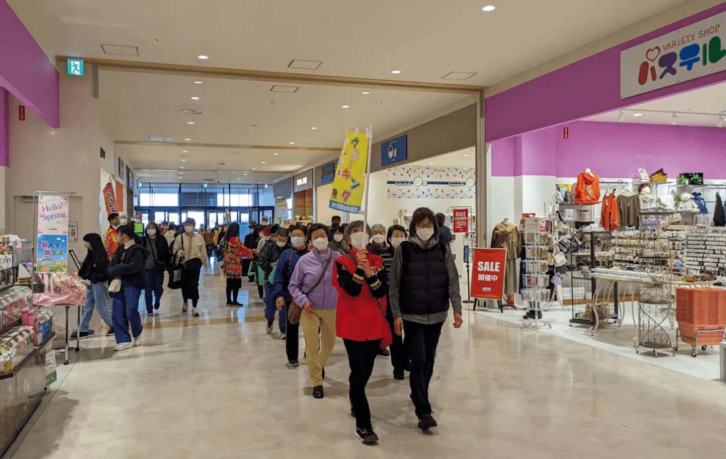 SC内では、地域の皆さまが健康を目的に歩ける場所として、ウォーキングコースを開放しています。天候や気温、時間を気にせず快適にウォーキングをお楽しみいただけます。秋田県のイオンタウン能代では、能代市と能代市健康推進員協議会主催のもと、SC内約1.2㎞を皆さまでウォーキング。健康イベントも同時開催し、健康管理に関する各種測定や健康相談に参加いただきました。また、各SCでは、健康増進イベントや介護予防イベントを実施し、地域の皆さまの健康をサポートしています。岐阜県のイオンタウン大垣では、「買い物 de リハビリフレイル予防」と題して、毎月、看護師が高齢者の方々に付き添いながら「買い物支援」をするほか、専門家による健康チェックや軽運動を行う健康教室なども実施しています。千葉県のイオンタウン旭では、地域の皆さまに楽しく健康意識を向上していただくためボディメイク初心者でも気軽に参加できる大会として、旭市と当社共催のもと、旭市初のボディメイク大会「あさひ筋肉フェスティバル」を開催しました。