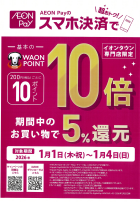 AEONPayのスマホ決済でWAONPOINTO10倍(1/1~1/4)