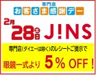 2月28日(土)JINS お客さま感謝デー 眼鏡一式より5%OFF!